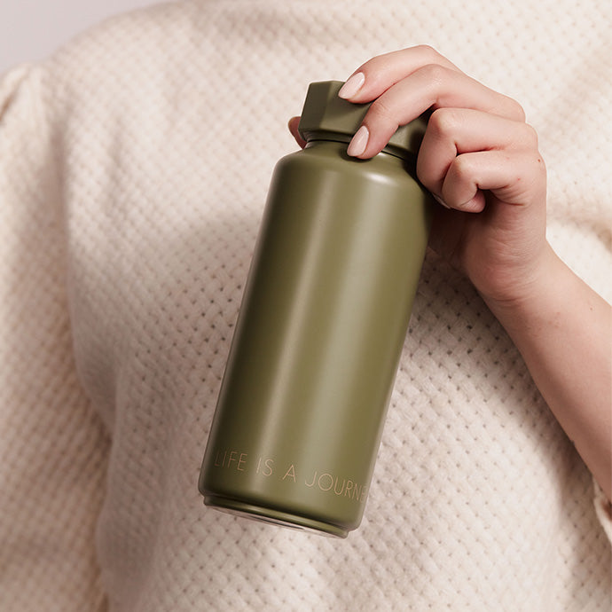The Insulated Bottle To Go in a tone-on-tone khaki design with the text “life is a journey” in a complementary shade is a stylish and practical choice for keeping your beverages at the perfect temperature. Constructed from high-quality food-approved stainless steel, this bottle is durable and safe for all your drinks. Its advanced vacuum insulation technology ensures that your drinks stay hot for up to 12 hours and cold for up to 24 hours, making it ideal for both hot and cold beverages.