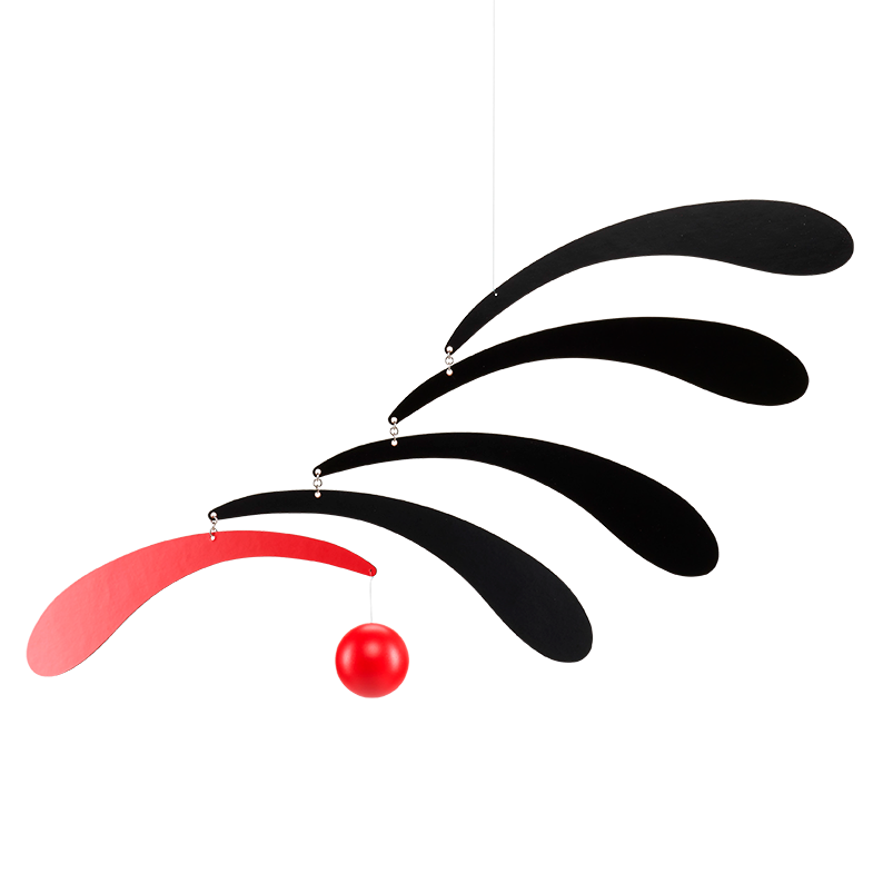 The Flensted Flowing Rhythm Red Black Mobile, designed by Christian Flensted in 1955, epitomizes timeless elegance and classic design. This mobile, crafted from high-quality fibreboard, features a captivating interplay of red and black shapes that move gracefully with the slightest air currents.