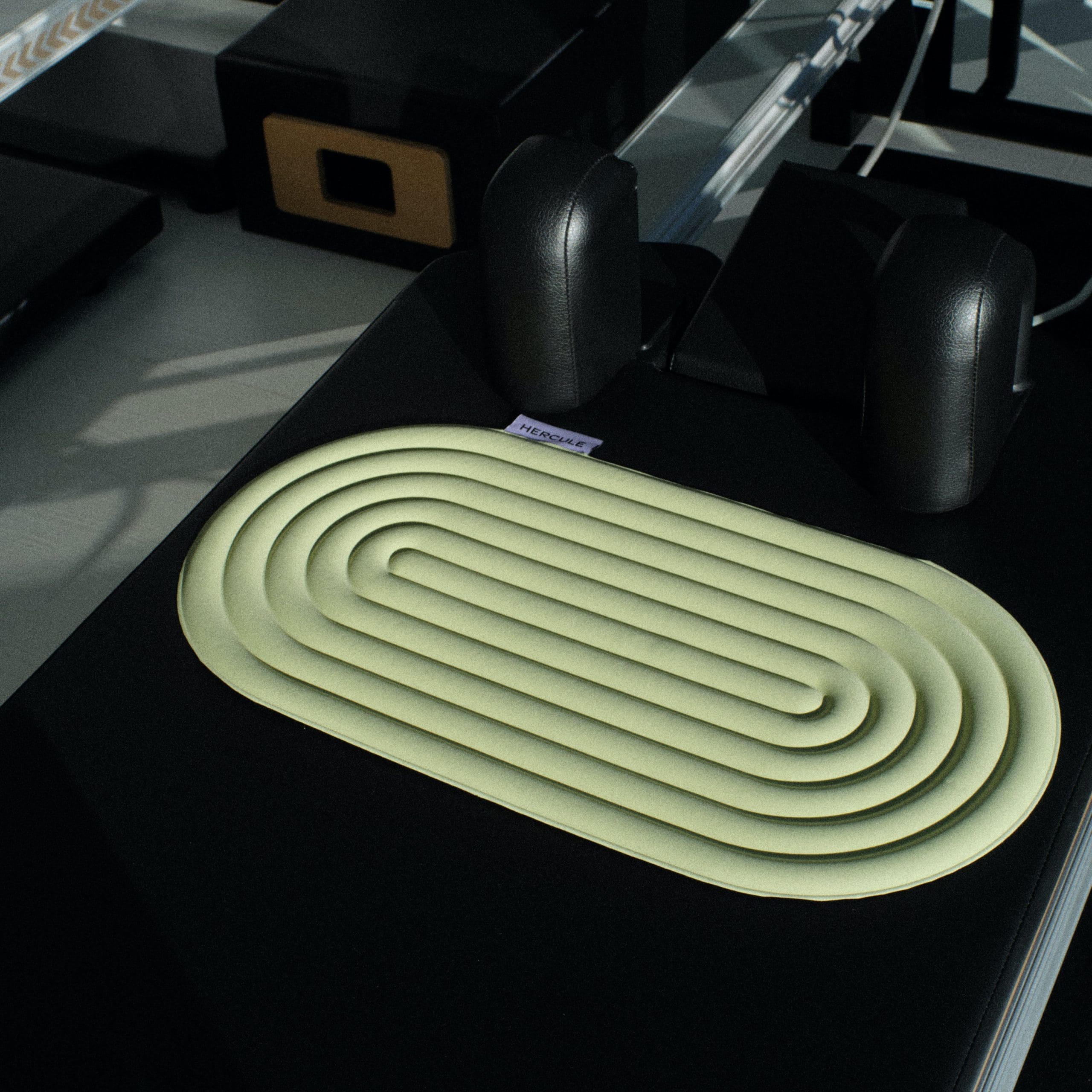 Its distinctive double arch silhouette offers a twisted take on the Archy Exercise Mat, while its raised relief surface delivers comfort, sensory stimulation, and a reassuringly firm 0.8 cm thickness. The Galé Comfort Pad in Pistachio print marks the debut of Hercule Studio’s design imprint, aiming to infuse the Galé Comfort Pad with inviting roundness, emblematic of comfort in motion. Its playful forms are achieved through the reinterpretation of one of the brand’s signature “H” symbols.