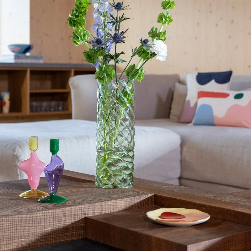 Crafted with meticulous attention to detail, this glass candle holder is not only functional but also a work of art. Its distinctive design adds an element of sophistication to any room. Whether you’re lighting a candle for a cozy atmosphere or using it purely as a decorative piece, the Flux Lilac Candle Holder will infuse charm and elegance into your living space. Enhance your home decor with the Klevering Flux Lilac Candle Holder. This beautifully crafted candle holder is a perfect blend of chunky and smooth elements, resulting in a one-of-a-kind design that will elevate your space.