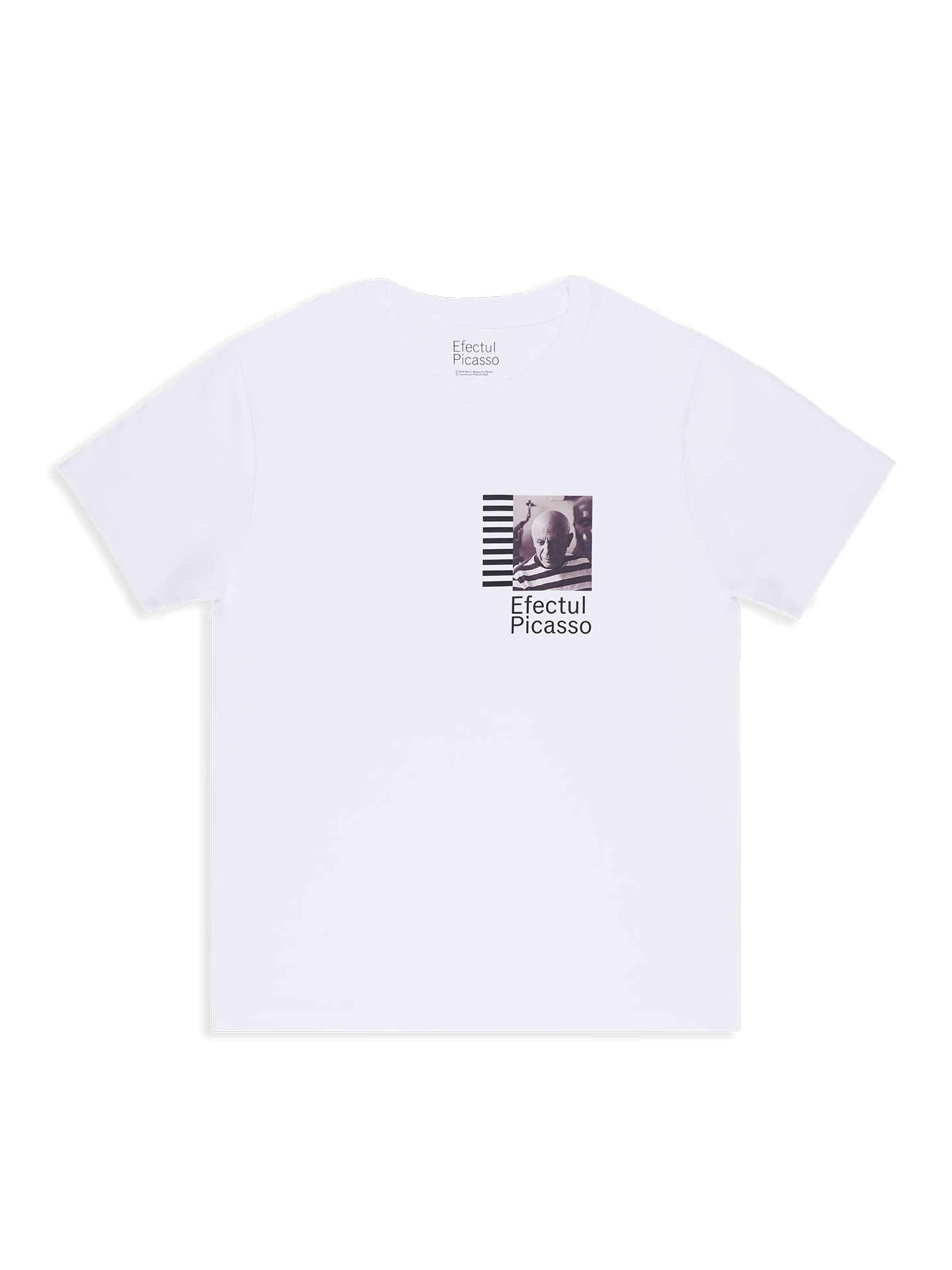 The white adult t-shirt is a remarkable piece of clothing, showcasing Picasso’s most famous photograph meticulously printed on the chest. This iconic image adds an element of elegance and originality to any outfit, capturing the essence of the Spanish artist’s creativity and genius. The photograph is accompanied by the text “The Picasso Effect,” emphasizing the influence and impact that Picasso’s creations have had on contemporary art and culture at large. The t-shirt is made from high-quality materials, offering comfort and durability, and its distinctive design is perfect for those who wish to express their passion for art and add a touch of originality to their everyday style.
